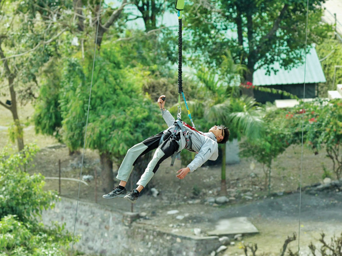 The bungee jumping platform at Thrill Factory in Rishikesh stands at a staggering height of 180 feet, making it India's highest fixed platform for bungee jumping.